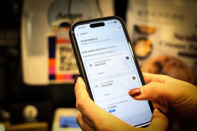 구로구 한 카페에서 주민이 모바일 애플리케이션을 통해 `구로사랑상품권`으로 결제하고 있다.28일 구로구는 설 명절을 앞두고 지역경제 활성화를 위해 2월 4일 오전 11시부터 총 120억 원 규모의 ‘구로사랑상품권’을 발행한다고 밝혔다. 상품권은 서울페이플러스 앱을 통해 구매할 수 있으며, 모바일 지역화폐 형태로 운영된다.
