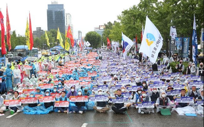 민주노총과 한국노총, 양대노총 공공부문노동조합 공공대책위원회(공대위)는 30일 서울 용산 전쟁기념관 인근에서 `조합간부 결의대회`를 열었다.
