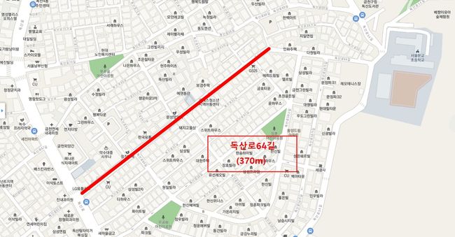 독산로64길 보행자 우선도로 조성 모습 및 위치도