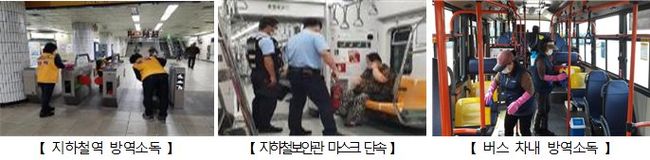 서울시는 연휴 중 안전한 대중교통 이용을 위해 지하철 역사 내 편의시설 및 손잡이, 좌석 등 대중교통 차내 승객접촉이 많은 시설물은 소독횟수를 늘리고, 마스크 미착용 승객은 집중 단속할 계획이다.