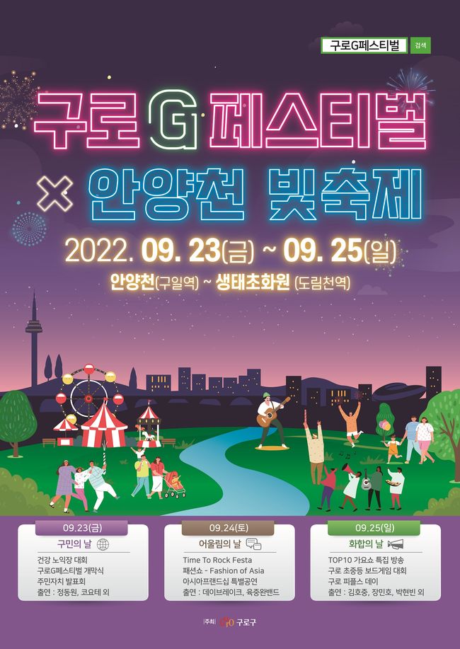 구로구는 9월 23일부터 25일까지 안양천과 생태초화원 등에서 ‘2022 구로G페스티벌’을 개최한다고 밝혔다.