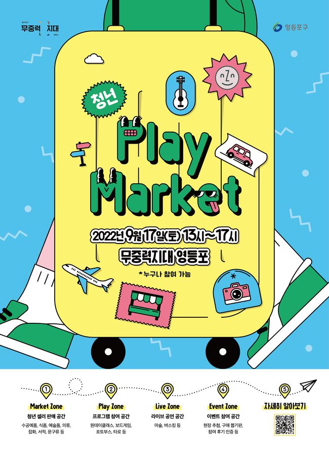행사는 오는 17일 오후 1시부터 오후 5시까지 청년활동공간인 무중력지대 영등포에서 진행되며, ▲마켓존 ▲플레이존 ▲라이브존 ▲이벤트존 등으로 이루어져 풍성한 볼거리와 즐길거리를 선보인다.