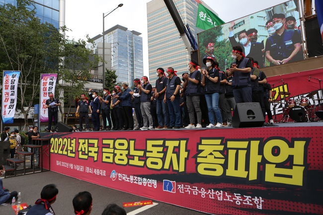 전국금융노동자들은 16일 서울 중구 세종대로에서 총파업 집회를 열었다.