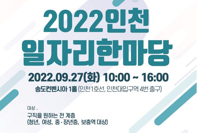 인천광역시는 ‘2022 인천 일자리한마당’채용행사가 오는 9월 27일(화) 송도컨벤시아 1홀에서 개최된다고 밝혔다.