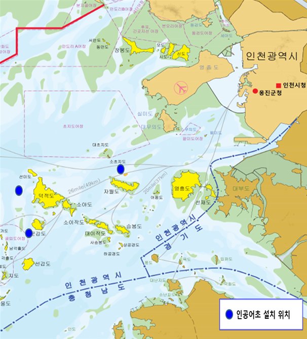 인천시는 이번 인공어초가 적지에 시설될 수 있도록 인공위성 항법장치인 어군탐지기(GPS) 등을 활용할 계획이며, 설치장소는 어업인 등의 해상 교통안전에 지장이 없도록 해도에 반영할 예정이다.
