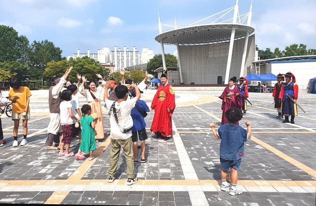 수원시가 시민들이 많이 찾는 공원을 방문해 ‘제59회 수원화성문화제’ 공연·체험 프로그램을 선보이는 ‘찾아가는 수원화성문화제’를 운영하며 수원화성문화제를 시민들에게 알리고 있다.