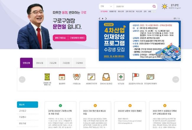 구로구 구청 홈페이지 메인화면 개편(개편된 홈페이지 화면 캡처)