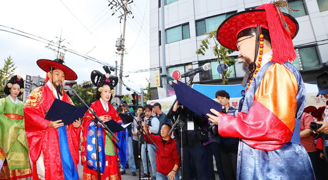 이어 시흥5동 은행나무로에서는 정조대왕이 금천현에서 시흥현으로 개칭을 명하는 ‘정조의 교서선포’와 백성들이 징과 꽹과리를 치며 억울한 일을 왕에게 직접 호소하는 ‘격쟁 상황극’이 연출된다. 유성훈 금천구청장은 상황극에서 시흥현령 역을 맡아 백성들의 물음에 대한 해결책을 제시할 예정이다.