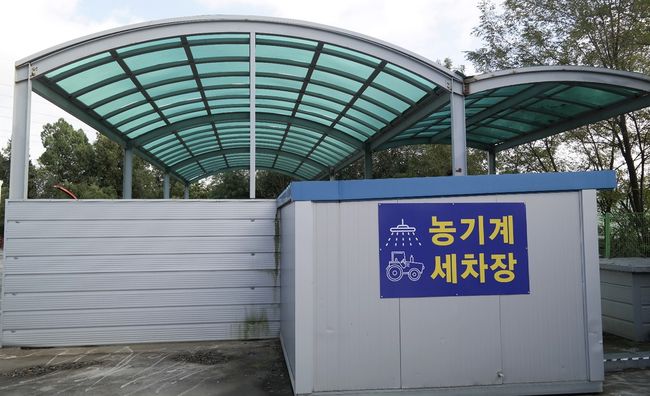 세차장에는 농기계 흙과 오물을 쉽게 세척할 수 있는 고압세척기와 세차에 따른 오염수를 정화할 수 있는 오폐수 정화 시설을 갖추고 있다.