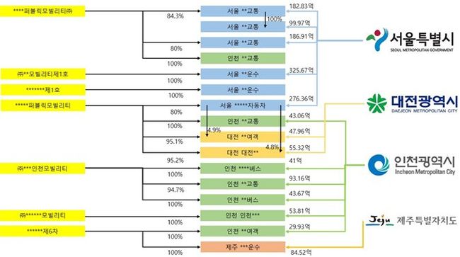 국민의힘 유경준 의원(강남 병, 국토교통위)이 서울특별시·인천광역시·대전광역시·제주특별자치도로부터 제출받은 자료에 따르면, 4개 시·도 버스회사 중 16곳의 버스회사를 사모펀드가 직·간접적으로 지배하고 있고 올해 이들 버스에 지원된 준공영제 재정지원금은 1,564억원에 달했다. 이 사모펀드의 임원들은 맥쿼리 출신인 것으로 알려졌다.