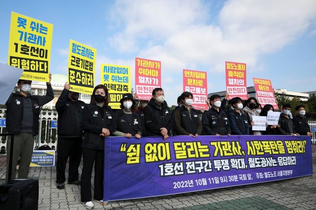 전국철도노동조합 서울지방본부(이하 철도노조)는 "11일 첫차부터 지하철 1호선 전구간으로 투쟁을 확대한다"고 밝혔다. 철도노조는 이날 오전 9시 30분 국회 앞에서 기자회견을 갖고, ▲연차휴가 불허 등 부당노동행위 중단 ▲현장인력 충원 등을 요구하며 지난 4일 시작한 `안전운행투쟁`을 확대할 것이라고 말했다.