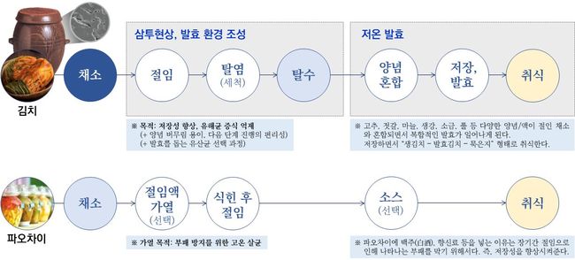 김치와 파오차이의 제조과정 비교(세계김치연구소 자료 중 일부)