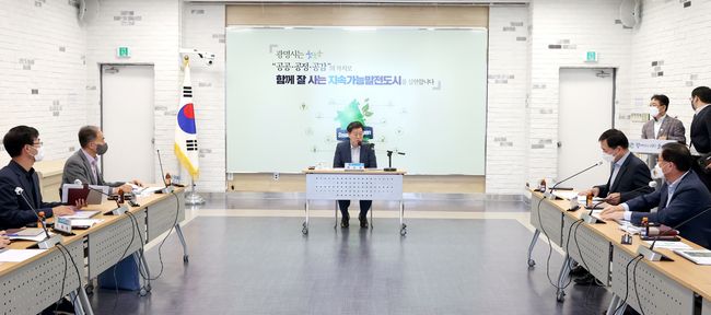 광명시는 14일 오전 10시 시청 중회의실에서 박승원 광명시장을 비롯해 관련 부서장, 용역사, 기술 자문위원 등 10여 명이 참석한 가운데 ‘하안동 철골주차장 재건축 타당성 조사 및 기본계획 수립용역’ 최종보고회를 가졌다.고 밝혔다.