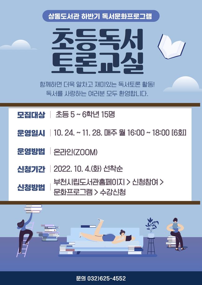 행사에 대한 보다 자세한 사항은 부천시립도서관 누리집을 참고하거나 상동도서관 독서진흥팀에 문의하면 된다.
