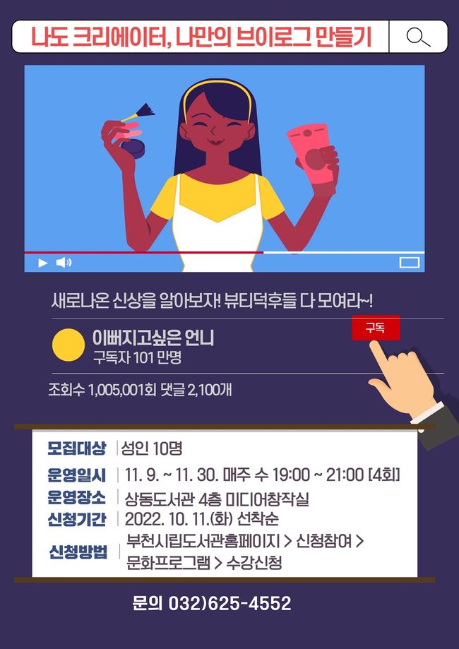 부천시, 시민 대상 맞춤형 독서·미디어 크리에이터 교육 총집합 - 깊어가는 가을 상동도서관 10~11월 연령별 문화프로그램 운영
