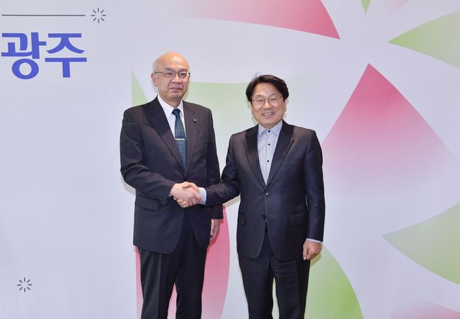 강기정 시장, 일본 센다이시 대표단 접견 - “대학 인재 및 도시 경제 협력 강화” 제안 - 자매결연 20주년 기념, 다카하시 신이치 부시장 광주 방문 - 강 시장 “새로운 방식의 교류 중요…시기·목적 등 실무 협의 진행”