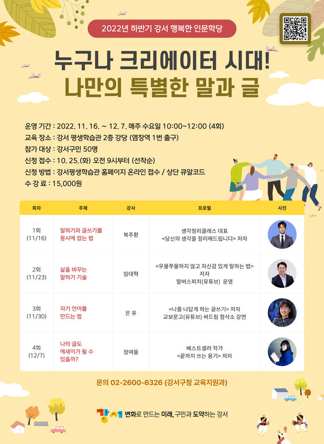 하반기 강좌 주제는 ‘누구나 크리에이터 시대! 나만의 특별한 말과 글’이다.