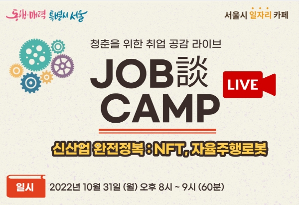 서울시는 최근 급성장하고 있는 신산업 분야 중 청년들의 관심이 높은 메타버스, 자율주행 분야의 현직자가 출연해 각 분야별 취업준비 비법을 공개하는 실시간 취업특강을 10월 31일(월) 저녁 8시부터 진행한다고 밝혔다.