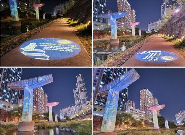 서울시설공단은 밤이면 동대문구 비우당교 인근 ‘청계천 고가도로 존치기념물(이하 존치교각)’에 조명을 비춰 가을을 상징하는 빛 작품이 화려하게 펼쳐지고 있다고 28일 밝혔다.