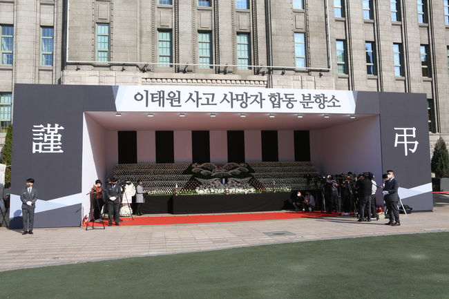 서울광장에 설치된 `이태원 사고 사망자 합동분향소`