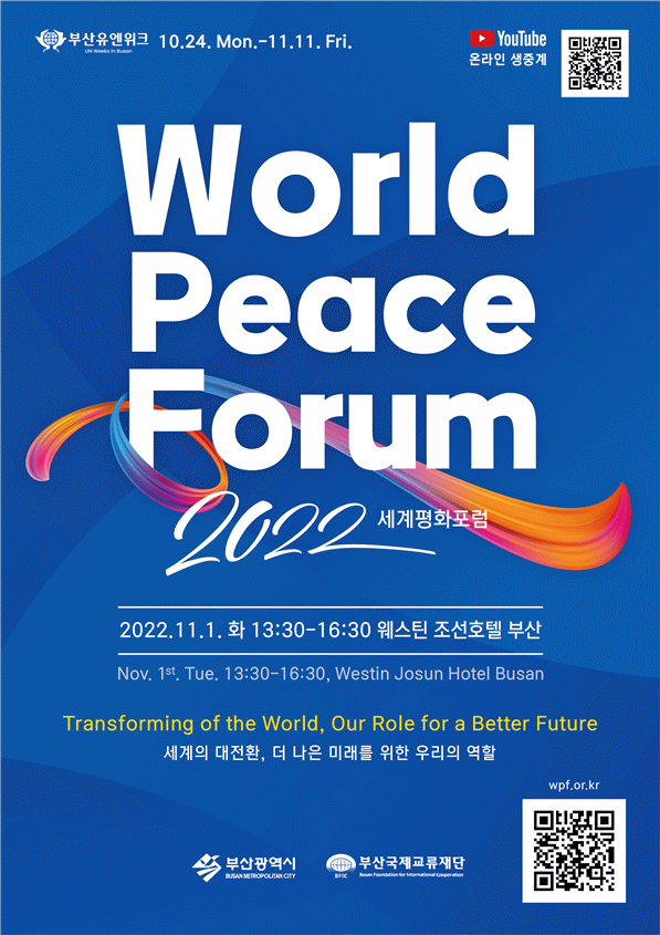 부산시와 부산국제교류재단은 부산유엔위크의 일환으로 오늘(1일) 오후 1시 30분 해운대 웨스틴조선호텔에서 「2022 세계평화포럼」을 개최한다고 밝혔다.