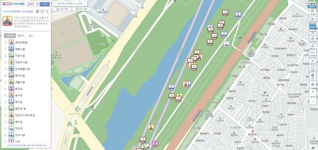 `안양천명소 주요시설물` 실행 화면-PC