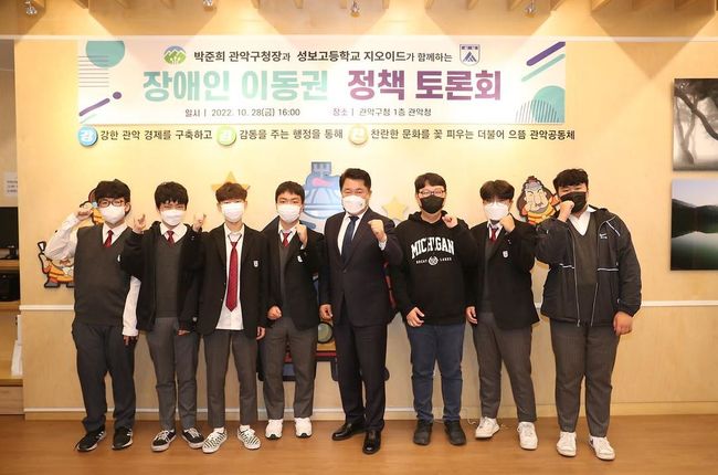 관악구, 청소년과 함께 ‘장애인 이동권 정책’ 만든다 - 지난 10월 28일, 열린구청장실 관악청(廳)에서 구청장과 학생이 자유롭게 토론 - 성보고등학교 지오이드 동아리, 장애인 이동권 확대방안 6개 정책과제 관악구에 제안