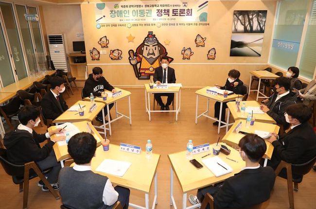 관악구가 지난 10월 28일 청내 열린구청장실 관악청(廳)에서 장애인 이동권을 주제로 구청장과 고등학생들이 함께 ‘장애인 이동권 정책 토론회’를 실시했다.