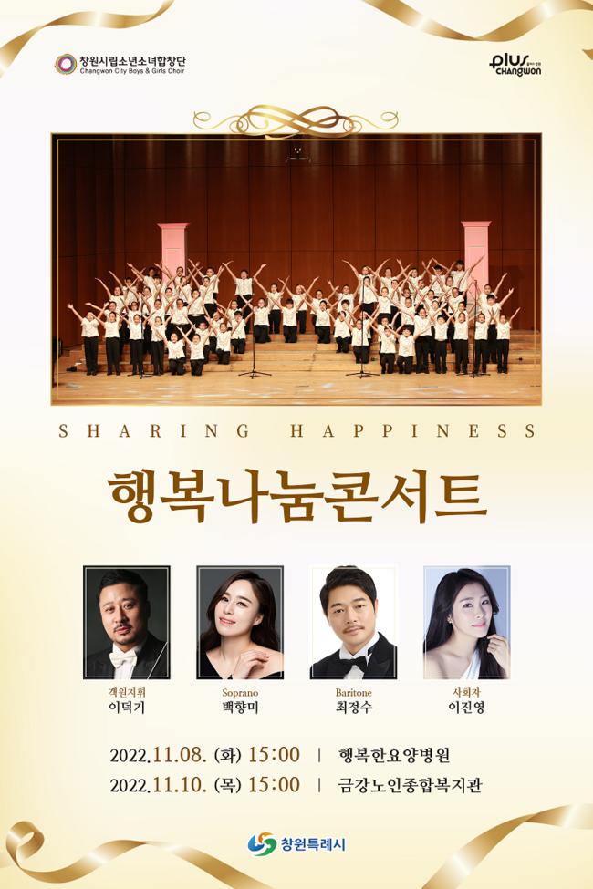 ‘행복나눔콘서트’는 창원시립소년소녀합창단의 기획공연으로, 공연장을 직접 찾아오지 못하는 환자 또는 어르신들과 더 가까이 소통하고, 행복과 희망의 기운을 전하기 위해 매년 개최하고 있다.