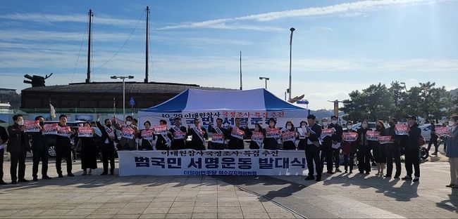 더불어민주당 여수갑지역위원회(위원장 주철현)는 10.29 이태원 참사의 철저한 진상규명과 엄정한 책임자 처벌을 위해 국정조사와 특검 수용을 촉구하는 범국민 서명운동본부 발대식을 열었다.