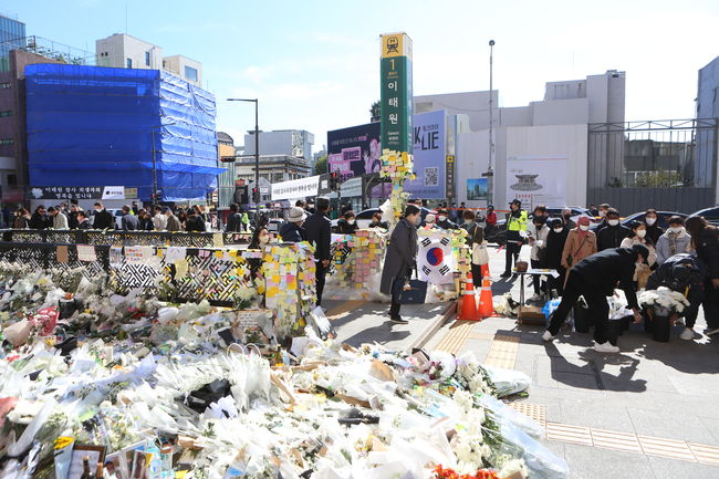 이태원참사 현장을 찾는 시민들의 발길이 이어지고 있다.