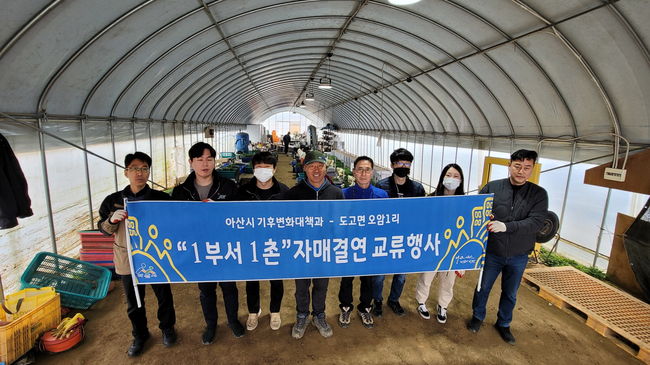 아산시 기후변화대책과가 지난 14일 1부서 1촌 자매결연 마을인 도고면 오암1리를 찾아 농촌일손돕기 활동을 진행했다고 밝혔다.