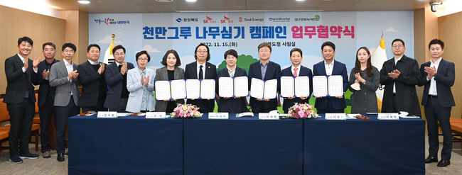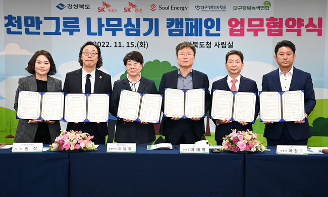 경북도는 15일 도청 회의실에서 SK E&S, SK증권, 소울에너지, 대구경북기자협회, 대구경북녹색연합과 `천만그루 나무심기 캠페인` 업무협약을 체결했다.