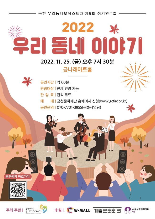 금천문화재단은 11월 25일 오후 7시 30분에 금천 우리동네오케스트라 제9회 정기연주회 ‘우리 동네 이야기’를 금나래아트홀에서 개최한다고 밝혔다.