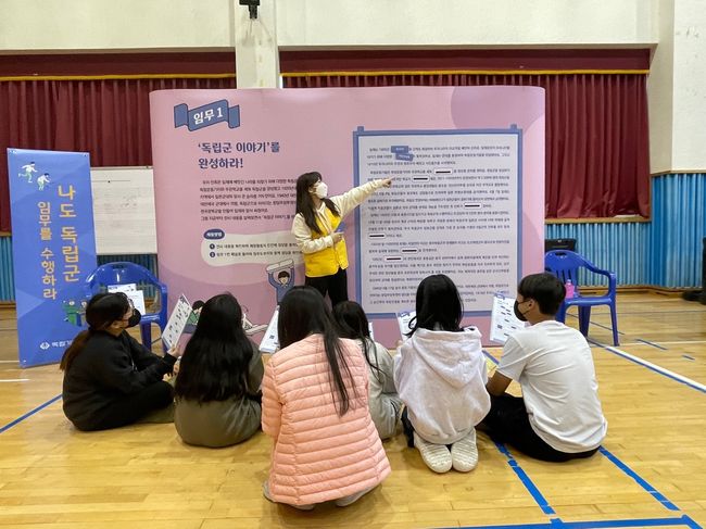 독립기념관(관장 한시준)은 11월 21일부터 23일까지 거제 국산초등학교 학생 712명을 대상으로 지역방문 교육프로그램인 ‘찾아가는 독립기념관(거제편)’ 교육을 진행한다고 밝혔다.