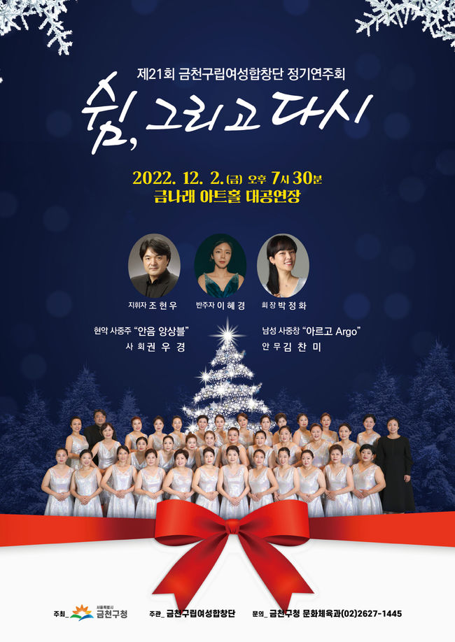 금천구는 금천구립여성합창단이 12월 2일 금나래아트홀에서 21번째 정기 연주회를 개최한다고 밝혔다.