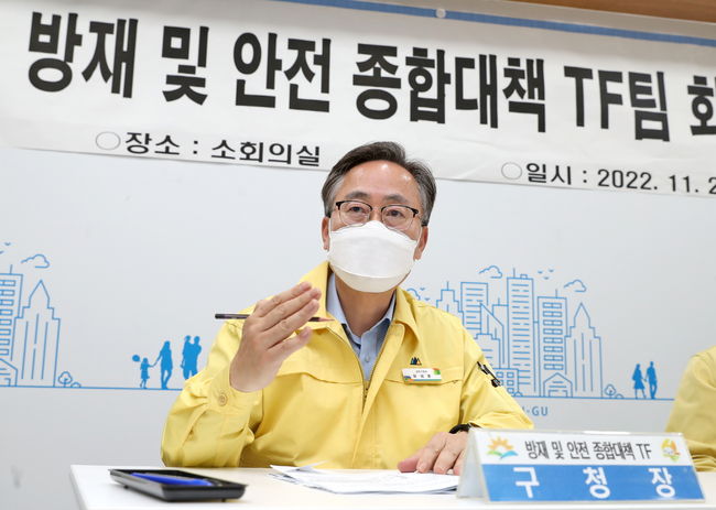 금천구는 11월 23일 오후 5시 유성훈 금천구청장 주재로 구청 소회의실에서 ‘방재 및 안전 종합대책 전담팀(TF) 회의’를 개최했다고 밝혔다.