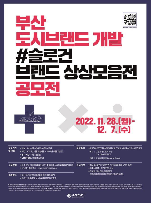 부산시는 부산의 새로운 정체성을 상징할 대표 슬로건 공모전 ‘#슬로건 브랜드 상상모음전’을 11월 28일부터 12월 7일까지 10일간 진행한다고 밝혔다.