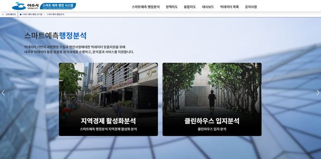 ‘스마트 예측행정시스템’은 여수시의 맞춤 데이터와 지도를 융합한 정책지도를 말하며, 사회‧경제 및 시정현황 등 다양한 분야에서 분석 자료로 활용될 수 있다.