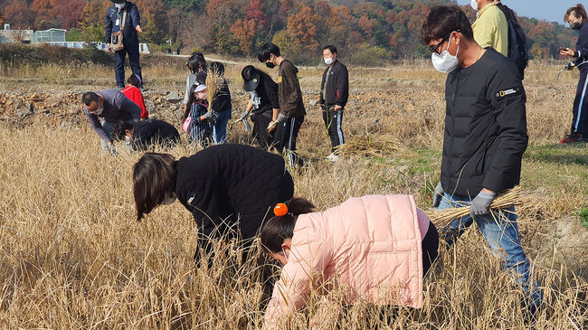 매주 수요일과 토요일 2회씩 운영된 이번 프로그램의 참가자들은 공공임대 휴경지에서 낫과 벼훑이를 이용해 전통 방식으로 벼를 베고 탈곡해 겨울 철새들에게 먹이로 나누어 줬다.