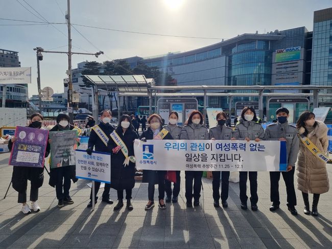 수원시가 11월 25일부터 12월 1일 세계여성폭력 추방주간을 맞아 1일 수원역 일원에서 ‘여성폭력 인식개선 캠페인’을 펼쳤다고 밝혔다.