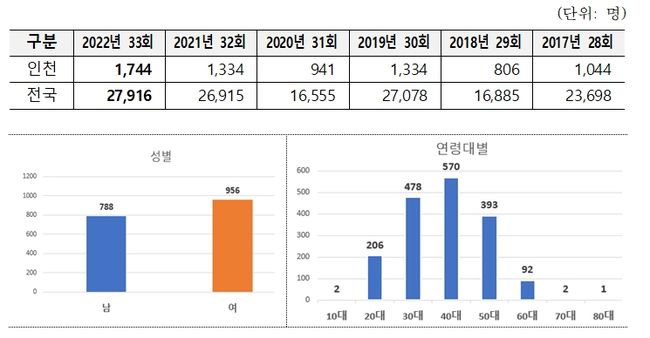 인천광역시(시장 유정복)는 2022년 제33회 공인중개사 합격자 1,744명에 대한 자격증을 12월 14일부터 16일까지 교부한다고 밝혔다.