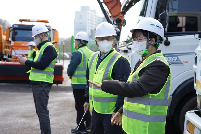 이순희 강북구청장이(맨 오른쪽) 제설장비 및 차량시험 가동훈련에 참여했다.