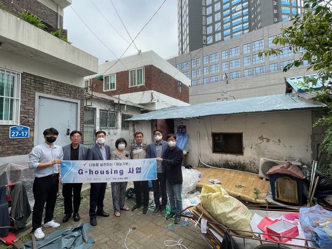 심곡본동 지하우징(G-Housing) 주거환경 개선사업 공사 후 기념촬영을 하고 있다