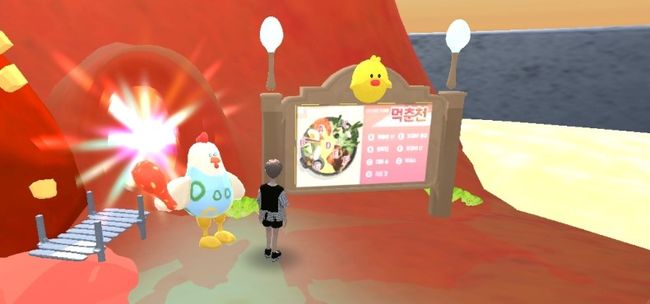 메타버스 플랫폼 내 구현된 춘천 닭갈비 월드에서 문제를 풀면 상품이 쏟아진다.