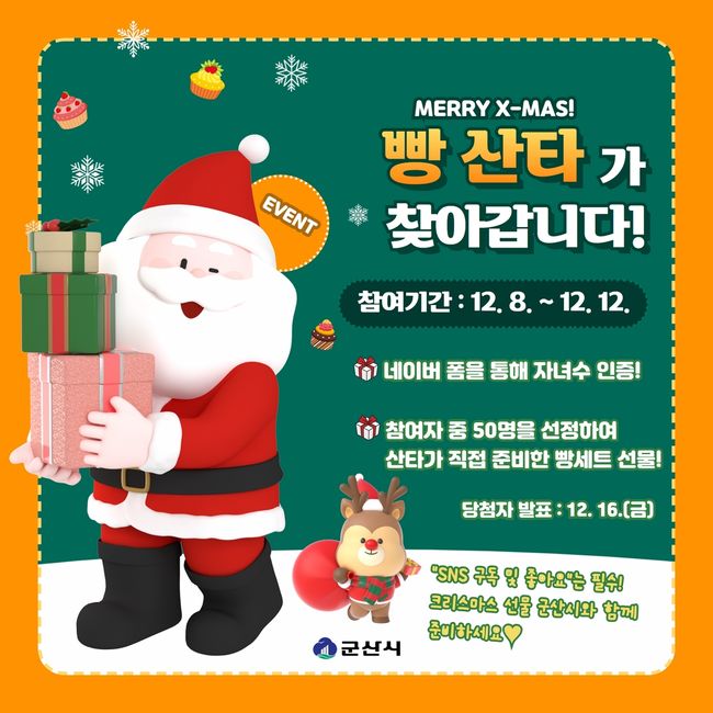 이번 이벤트는 다자녀 가정의 즐거운 연말을 위해 기획됐으며, 참여 방법은 제공된 네이버 폼을 통해 자녀 수를 적고 간단한 인증 절차만 거치면 된다. 당첨자는 SNS 채널을 구독하고 있는 군산 시민에 한해 50명을 선정할 예정이다.