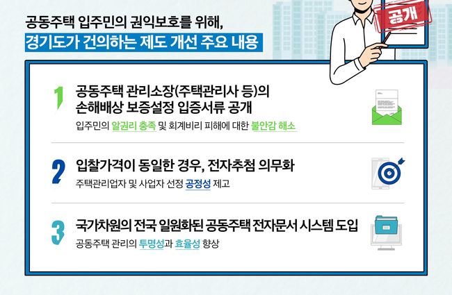 경기도는 이러한 내용을 담은 공동주택관리법 개정안을 국토교통부에 제출했다고 8일 밝혔다.