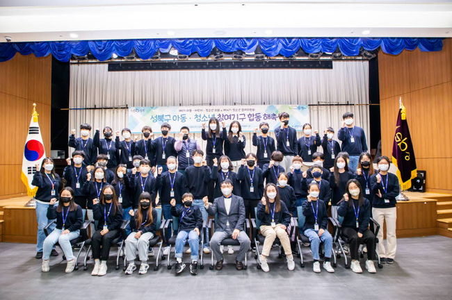 성북구가 지난 3일 ‘성북구 어린이·청소년 참여기구 합동 해촉식’을 성북구청 아트홀에서 개최했다. 이날 제9기 어린이·청소년의회와 제14기 아동·청소년 참여위원회 위원을 비롯하여 대학생 보좌관 및 학부모 등 100여 명이 참석해 자리를 빛냈다고 밝혔다.