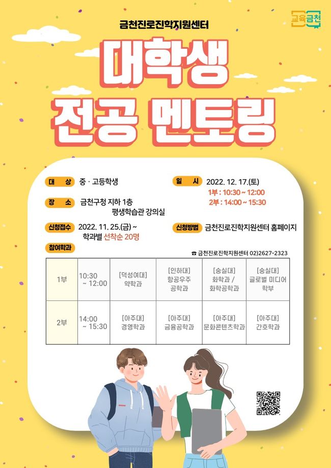 금천구, 미리 만나보는 대학생활 `대학생 전공 멘토링` 개최