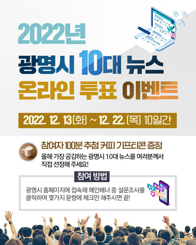 광명시는 12월 13일부터 22일까지 `2022년 광명시 10대 뉴스` 시민 온라인 투표를 진행한다.